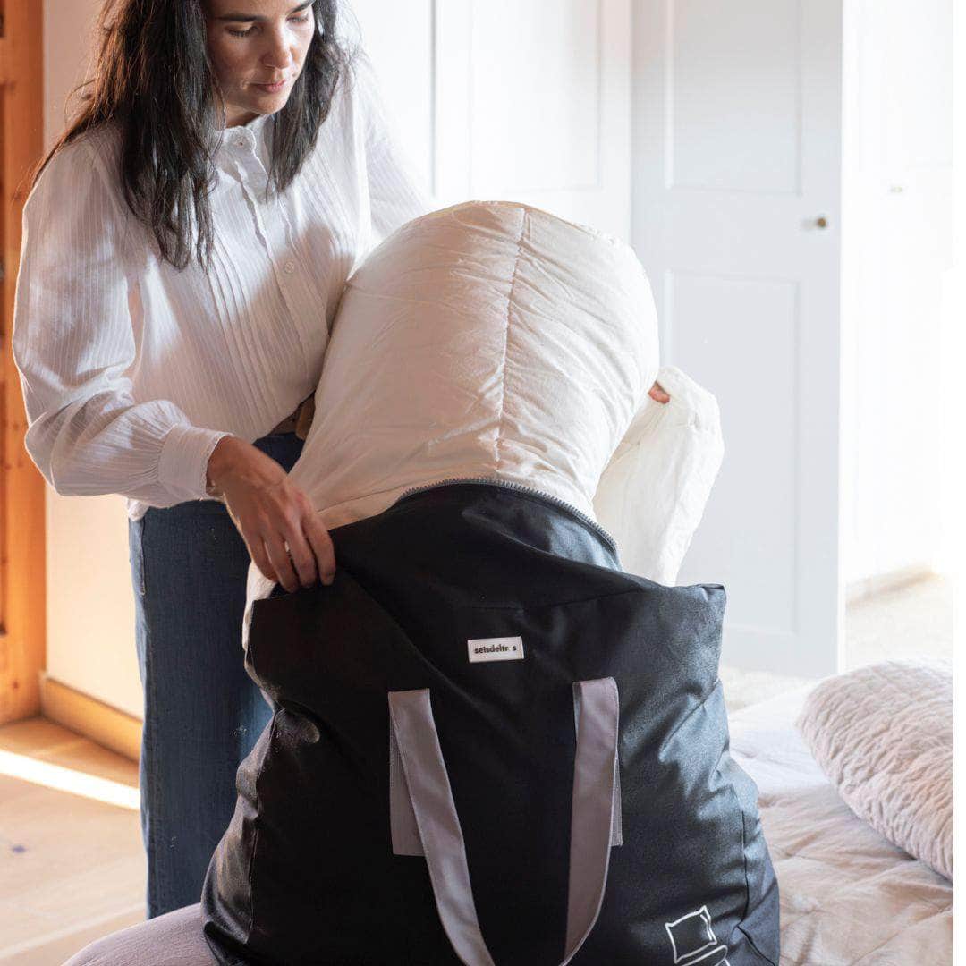"La tela es increíble, la he usado en la playa, en viajes y hasta para la lavadora. Se limpia en un segundo y sigue como nueva."