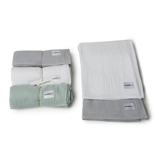 Pack Trío muselinas (Gris-Blanco-Verde)