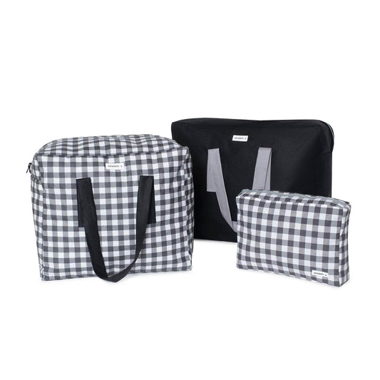 Pack complet - Sac L, sac XL et trousse de toilette - Vichy/Noir