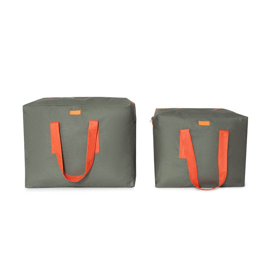 Pack complet - sac XL, sac L et trousse réversible - Vert Kaki anses orange